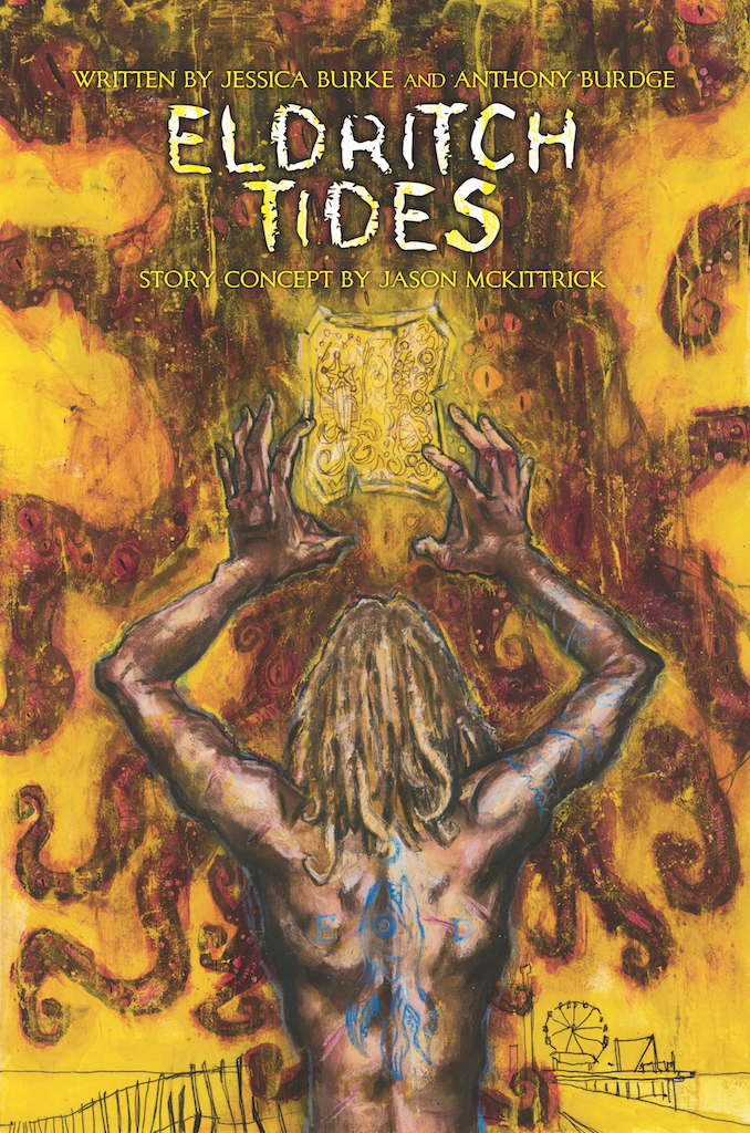 A long forgotten artifact, churned up by the storm, washed ashore to be discovered by a fledgling cultist Jeremiah Allen. The knowledge revealed to him by the Elder Tablet Jeremiah followed in the footsteps of his ancestors as he pursued the dark magicks contained therein. After his evaluation of Jeremiah seven years later, the attending psychiatrist at Toms River Psychiatric Unit, Dr. Gilbert Halsey contacted an old friend at Miskatonic University. When Dr. Nora Danforth heard, and saw the news, she agreed to travel to Tom’s River to investigate The Elder Tablet.